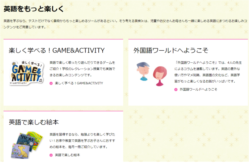 英検Jr. のHPには、テスト内容、対象、目的などが記載されています😊