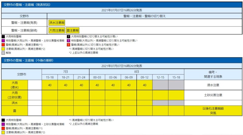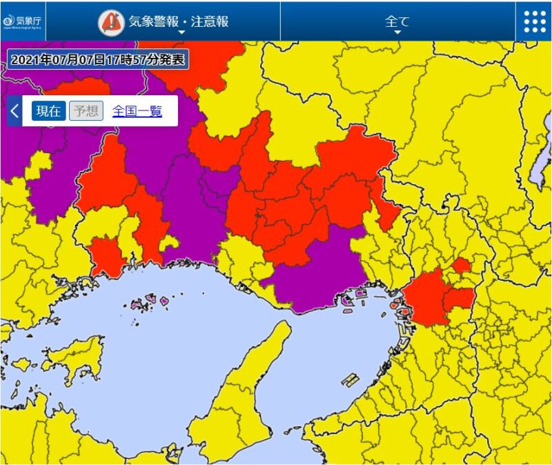 7月7日㈬18:00現在、交野市に警報は出ておりませんが、