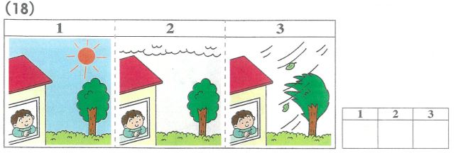 文を2回聞き、正しい絵に合う番号に〇をする形式の問題です。