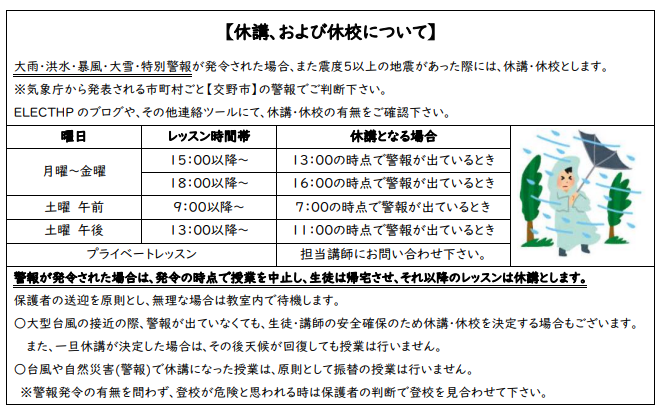 2022年カレンダー/気象警報発令時の休講・休校について