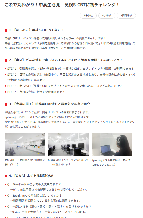 保護者必見:英検S-CBTについて(英検3級以上) 2025年度 おしらせ 2025.11.02 ・保護者必見!!https://eigojoho.eiken.or.jp/education/3929/https://eigojoho.eiken.or.jp/education/3952/・英検情報ウェブより転載